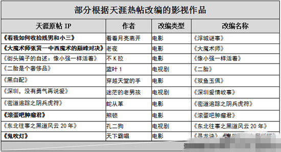 像其中天下霸唱的《鬼吹灯》,在天涯首发之后,迅速爆红,成为当时的热门IP,而之后起点文学利用变现的诱惑,将其成功挖走,导致了天涯痛失一个未来的超级IP。而《鬼吹灯》的两部电影目前正在拍摄当中,万众关注,却已经不关天涯什么事。同样类似的例子还有孔二狗、当年明月等等。
