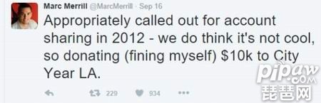 Marc为此自罚自己一万美元,将其捐给教育慈善组织City Year LA。